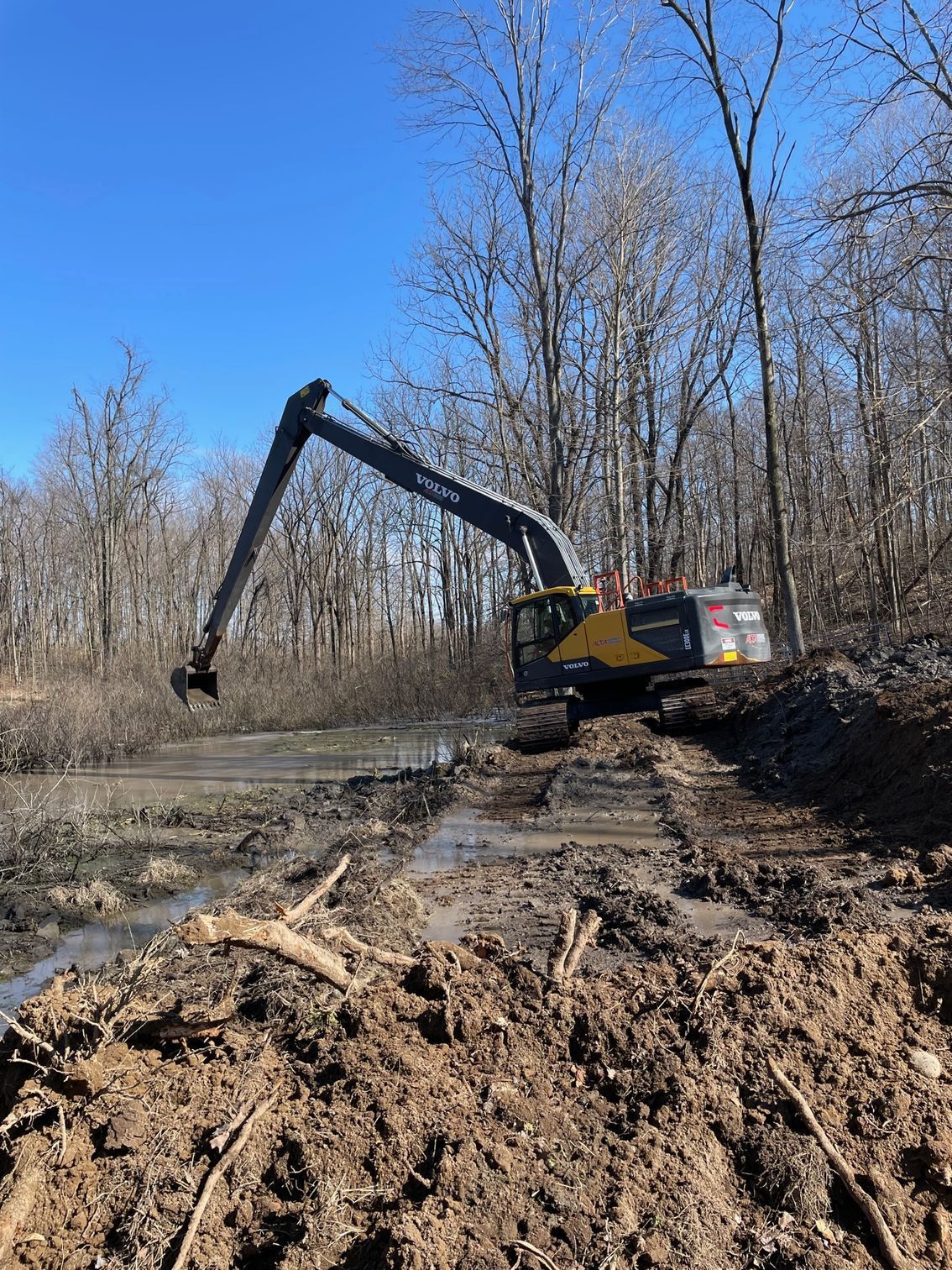 Need your pond dug? With our 60 ft. long reach Volvo Excavator we can now dig your pond with ease. Give us a call today for a free quote.